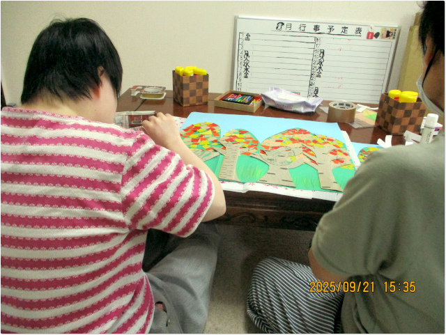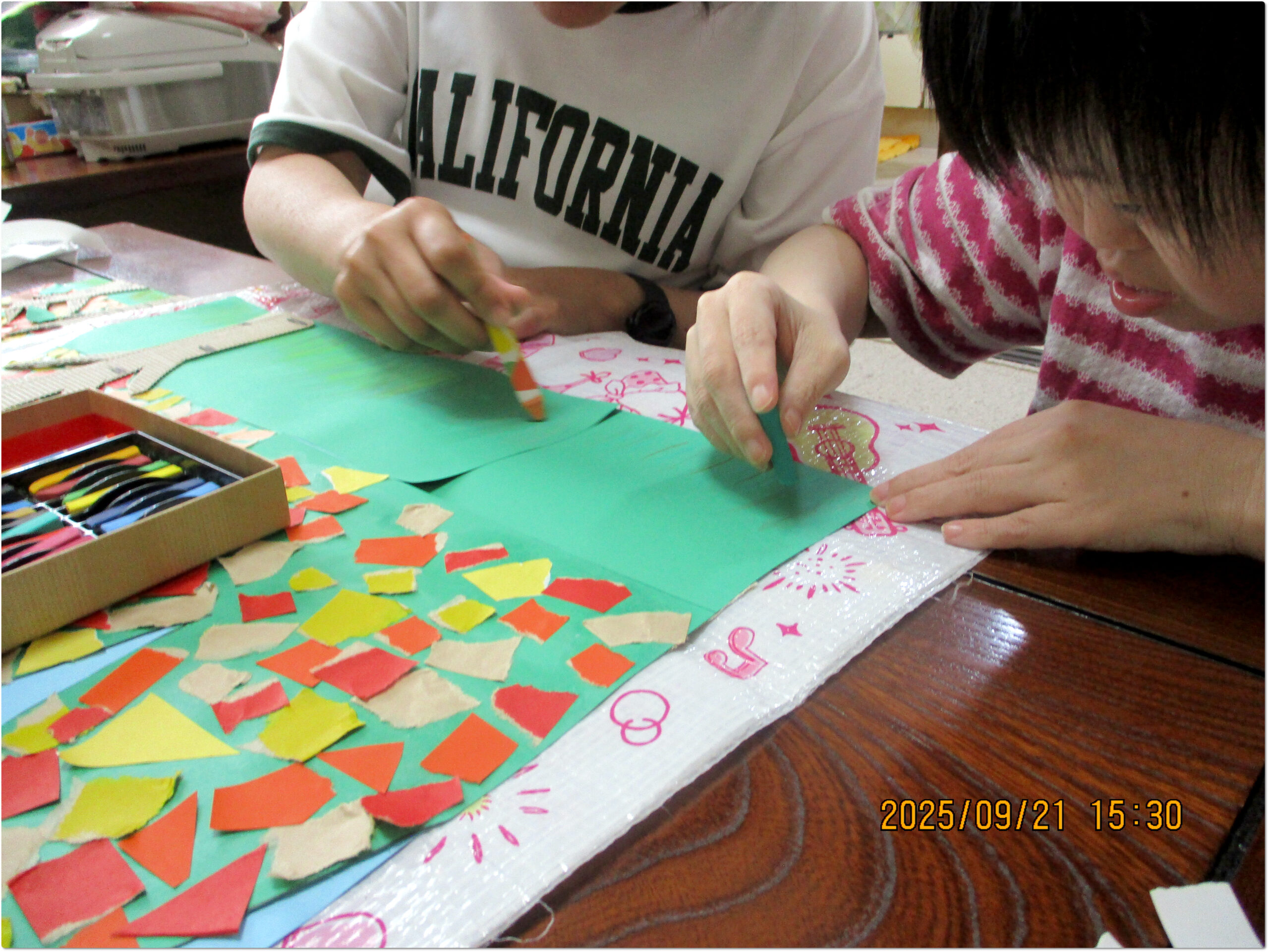 宿泊型生活訓練「ポータルスペース」を実施し、家庭以外の居場所作りや自立の向けての支援をします。また、地域活動支援センター「レインボータイム」では、休日に、仲間と楽しく集うことを目的に、利用者の皆さんが趣味を見つけたり興味のある事に参加ができるように、いろいろなメニューを実施し社会参加のための支援をします。